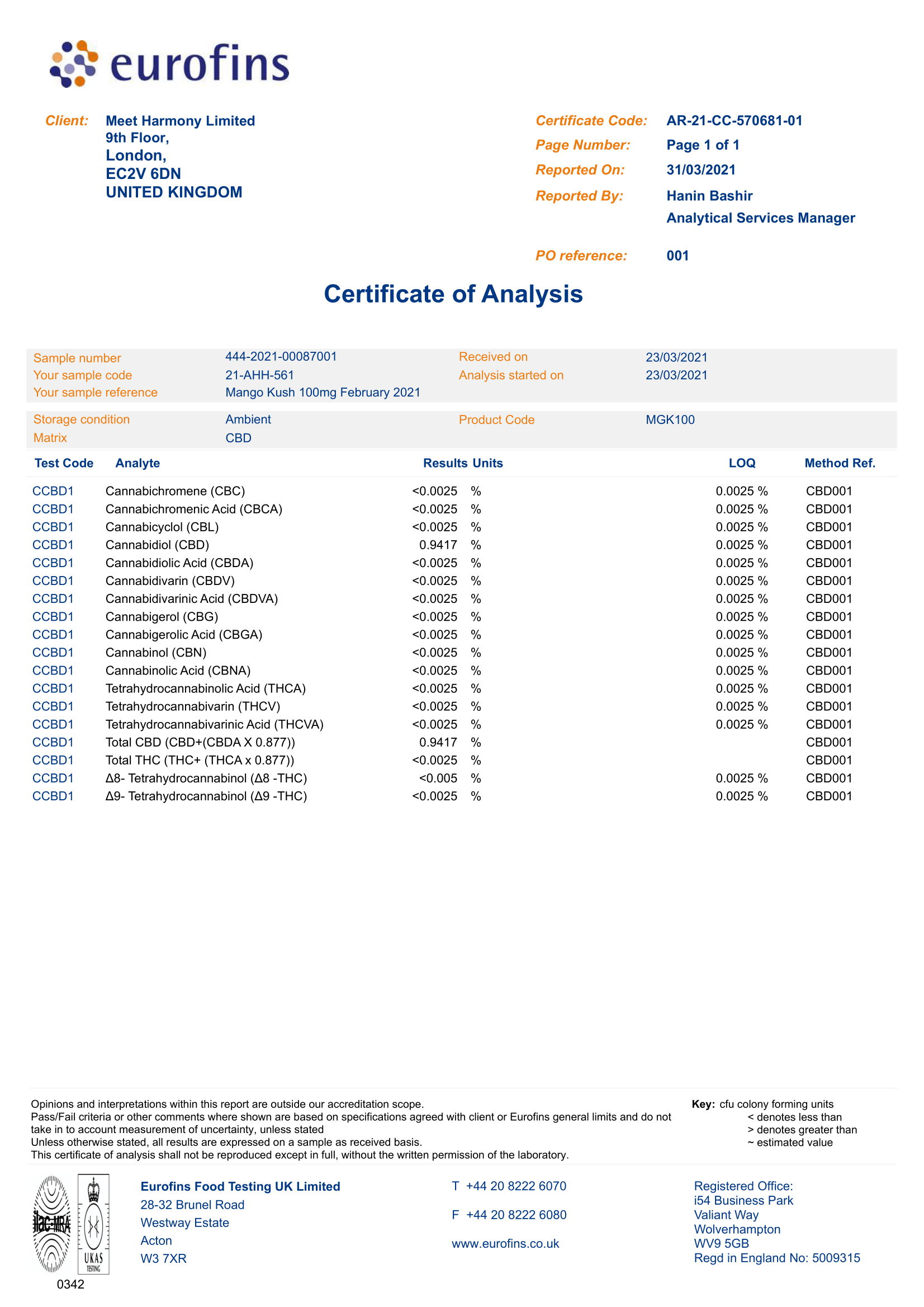 Harmony er kendt for sin høje kvalitet og laboratorietestede CBD-produkter. Hver batch kontrolleres månedligt af uafhængige laboratorier for at sikre renhed, konsistens og sikkerhed.